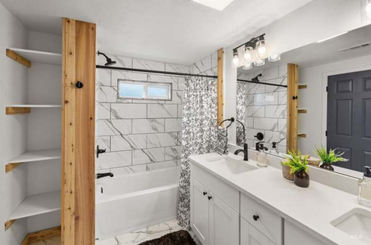 Bathroom Remodeling Upgrades featuring energy‑efficient fixtures, tiled showers, and improved lighting in Treasure Valley homes.